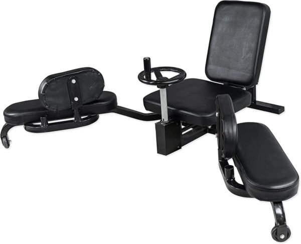 - HEAVY DUTY- This leg stretching machine is constructed from solid Steel and high-density dual layered padding to withstand the test of time in a personal home gym. Max Weight 300lbs.