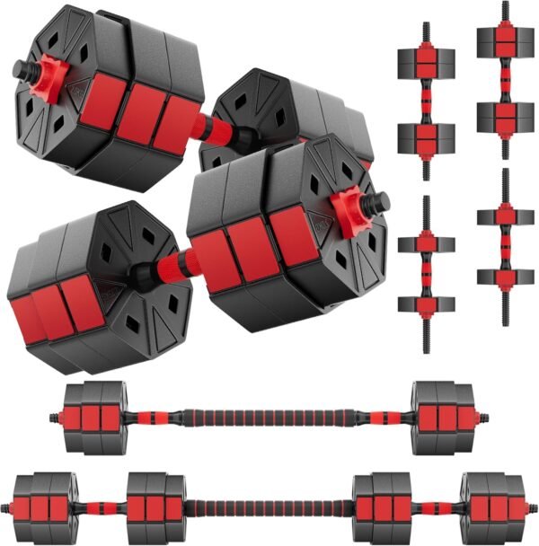 - 3 Modes in 1 Set:This adjustable dumbbells set includes a pair of adjustable dumbbells that can be converted into barbells and push-up stands. You can use them for various exercises, such as bench press, squat, curl, and more.