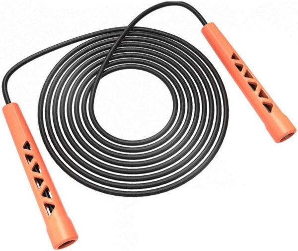- Entry-level jump rope equipped with solid PVC rope and PP handles, has non-bearing system but runs smoothly and speedly.