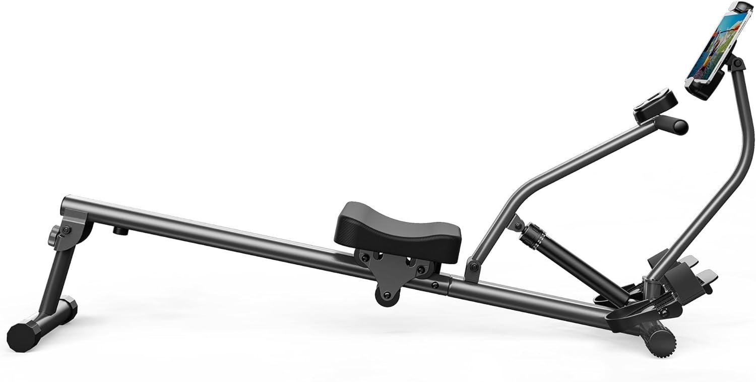 Rowing Machine, Rowing Machine for Home, Compact Hydraulic Rowing Machine with 16-Level Resistance, 300LBS Weight Capacity and Adjustable Phone Holder Tube